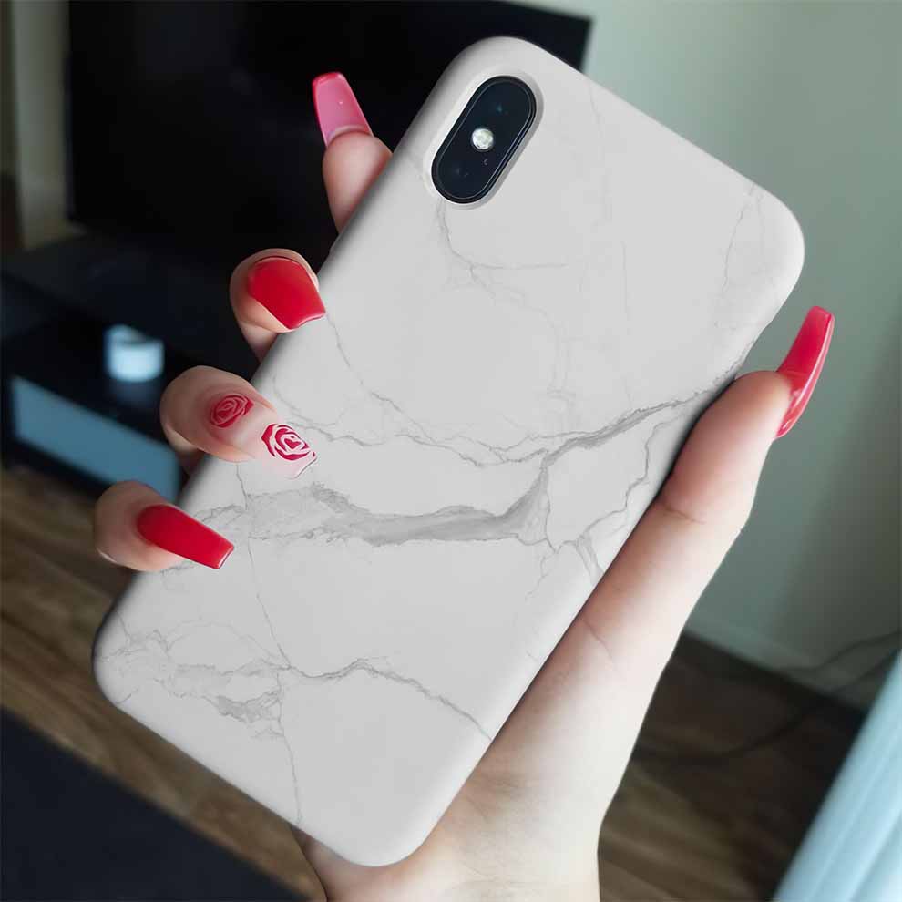 Beyaz Arka Planlı Gri Tek Tük Çizgiler Mermer Baskılı Silikon Telefon Kılıfı