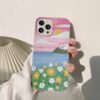 Beyaz Sarı Çiçekler Gri Arka Tonlu Baskılı Renkli Silikon Telefon Kılıfı