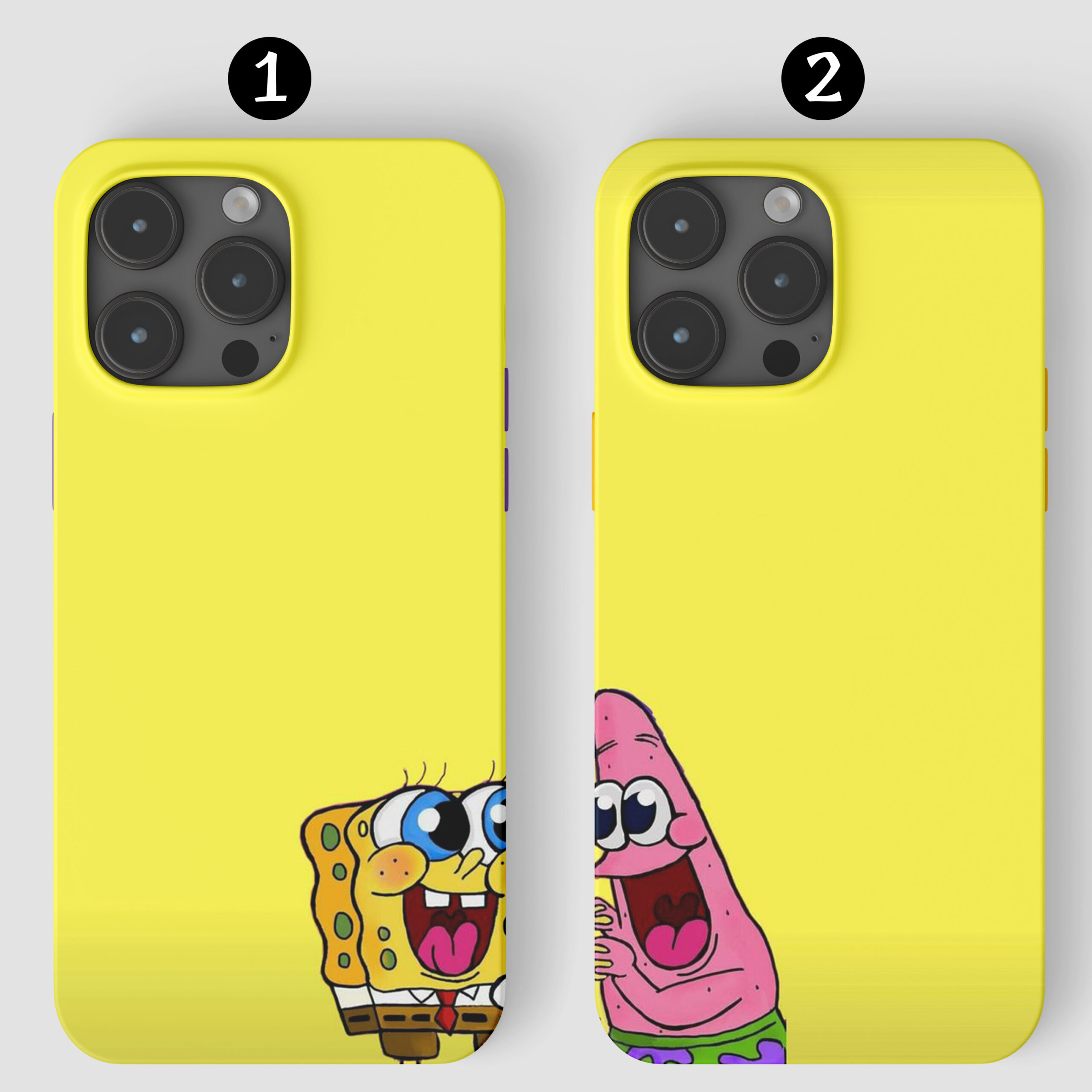 Çift SüngerBob Tasarımlı Baskılı Telefon Kılıfı