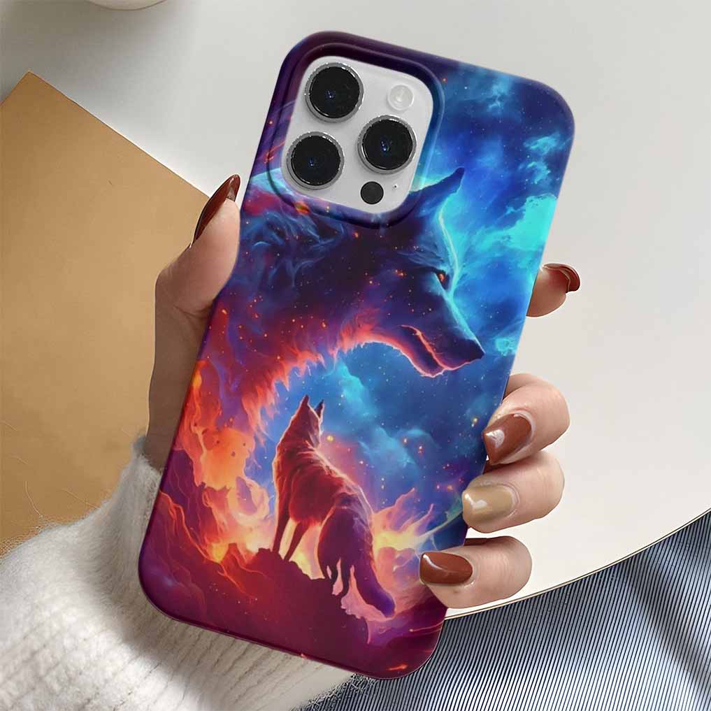 Galaksi Renkleri Kurt Tasarımlı Silikon Telefon Kılıfı