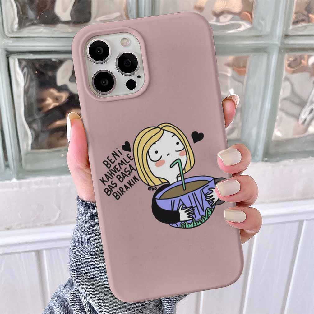 Kahvemle Baş Başa Bırakın Tasarımlı Silikon Telefon Kılıfı
