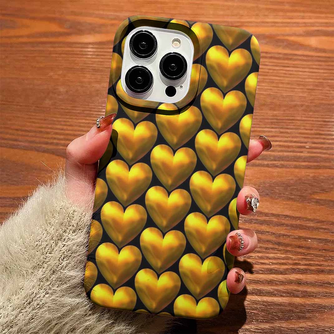 Kolaj Altın Kalpler Tasarımlı Silikon Telefon Kılıfı