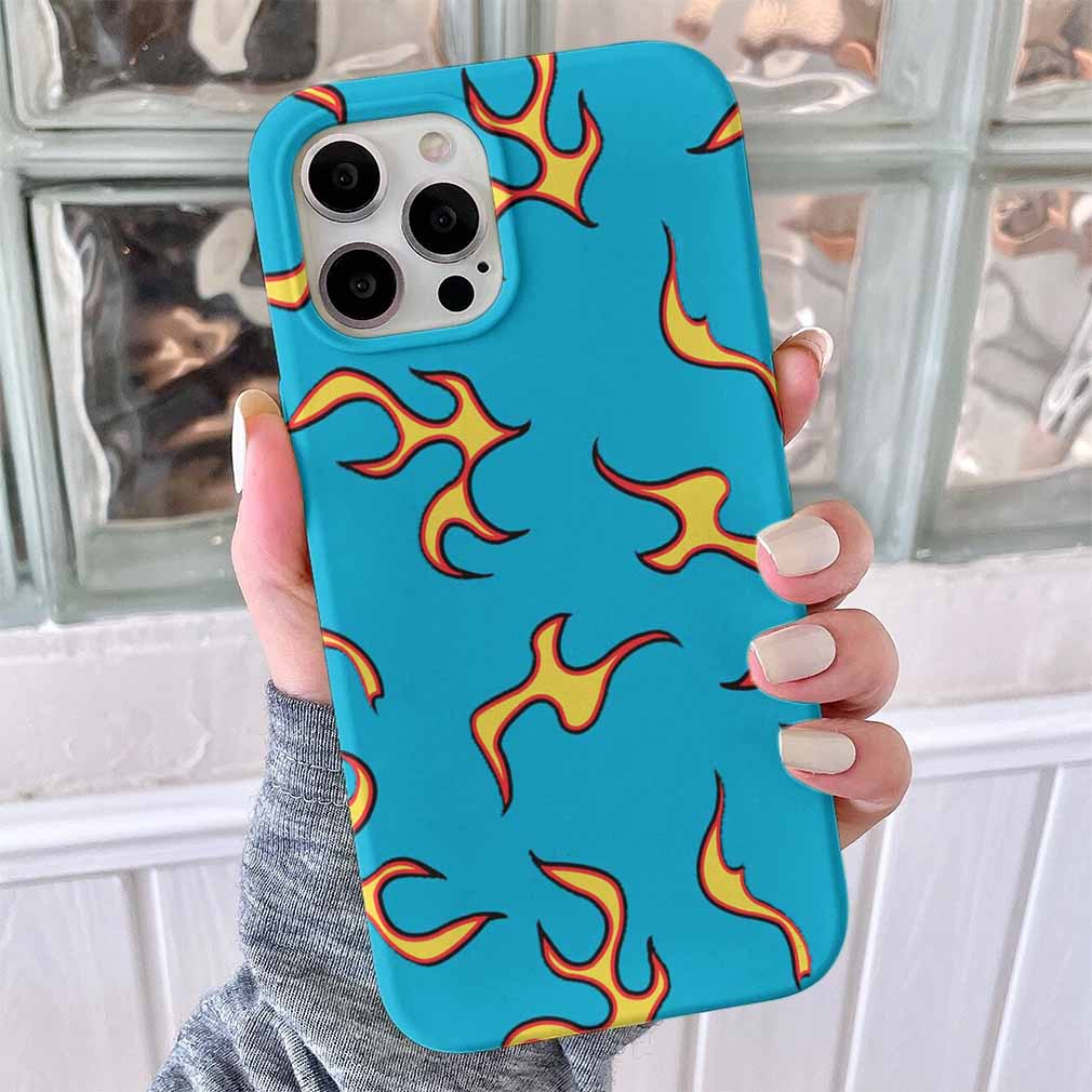 Mavi Arka Planlı Sarı Alevler Tasarımlı Silikon Telefon Kılıfı