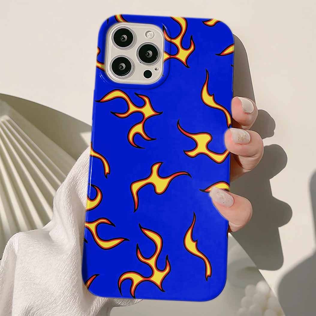 Mavi Arka Planlı Yapay Alevler Tasarımlı Silikon Telefon Kılıfı