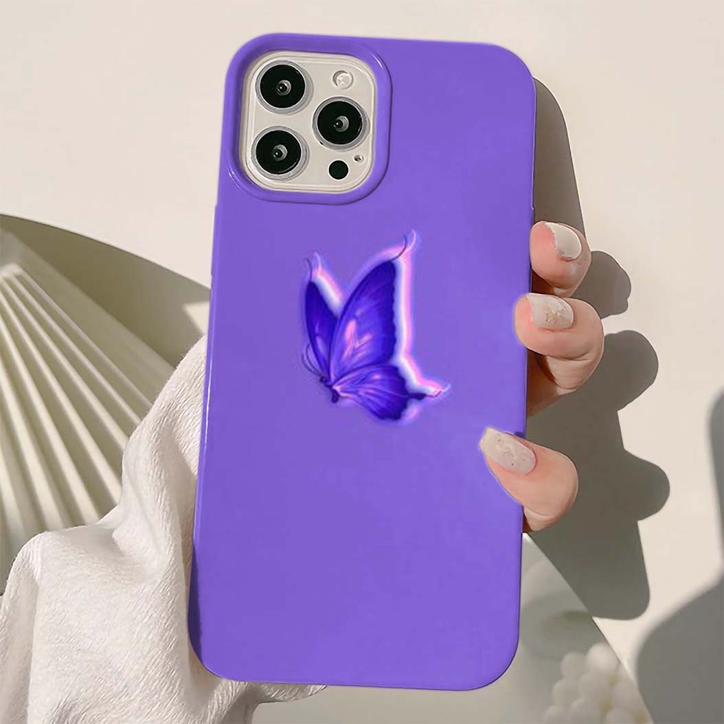 Mor Kelebekli Mor Tema Baskılı Silikon Telefon Kılıfı
