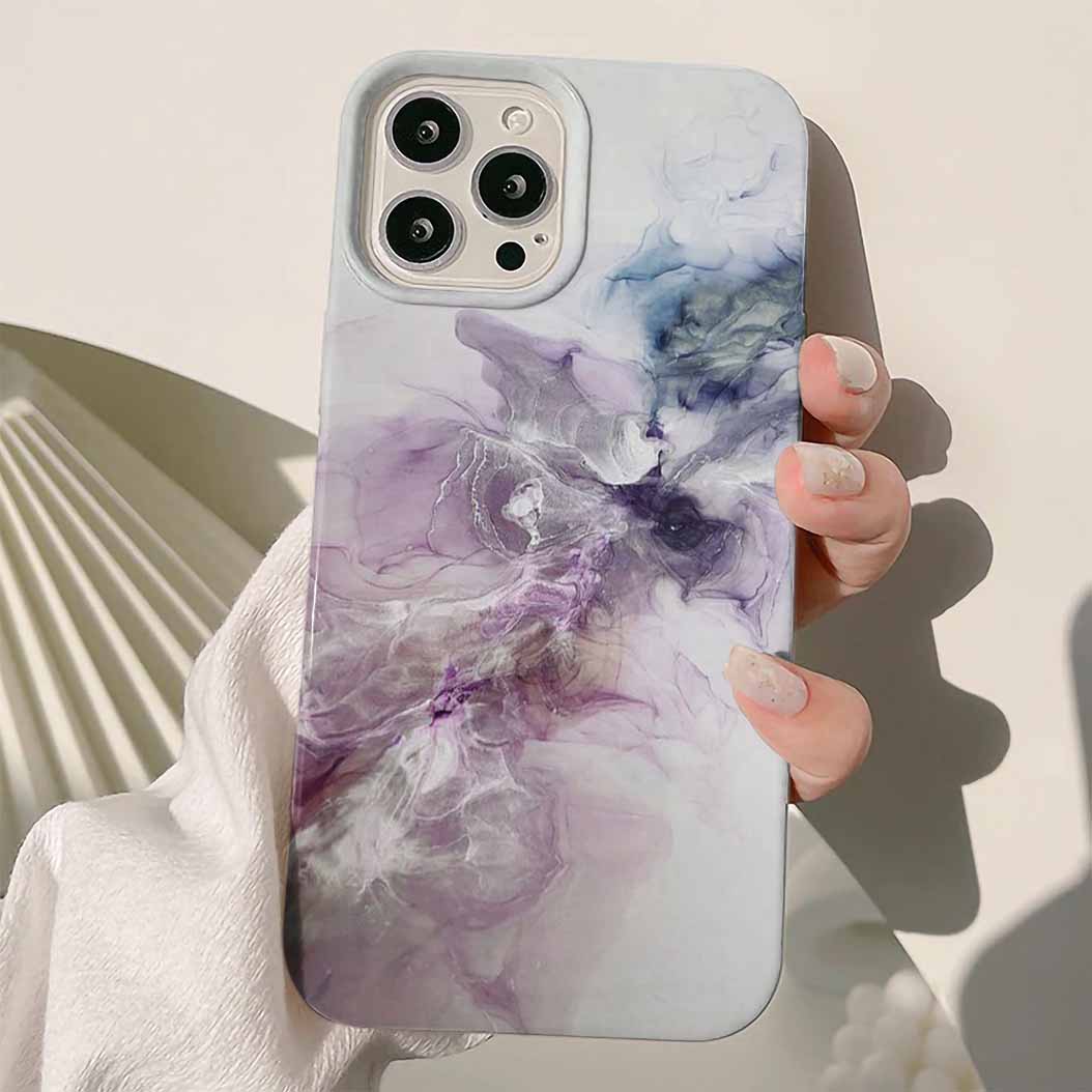 Mor Mavi Yaldızlı Mermer Baskılı Silikon Telefon Kılıfı