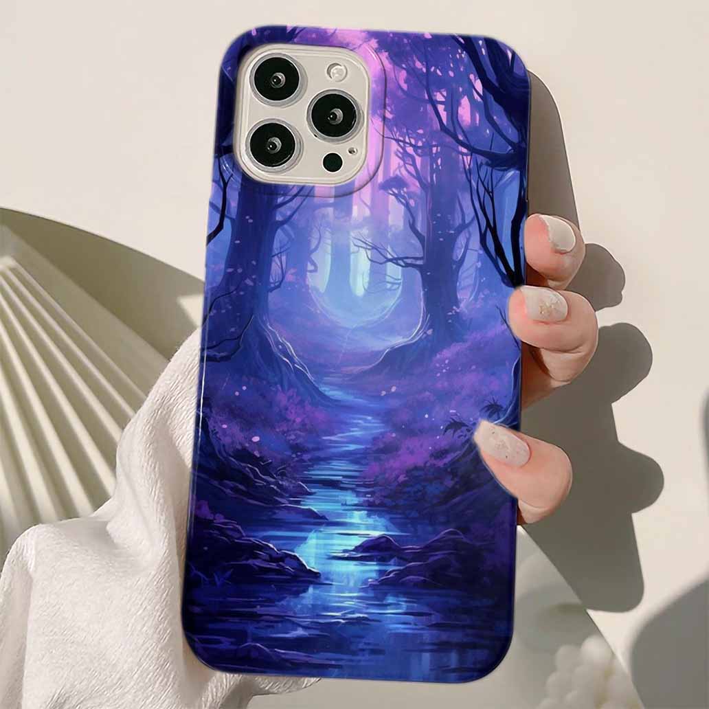Mor Tonları Orman Tasarımlı Silikon Telefon Kılıfı