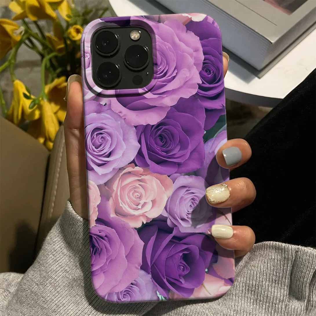 Mor Tonlarındaki Çiçekler Tasarımlı Silikon Telefon Kılıfı