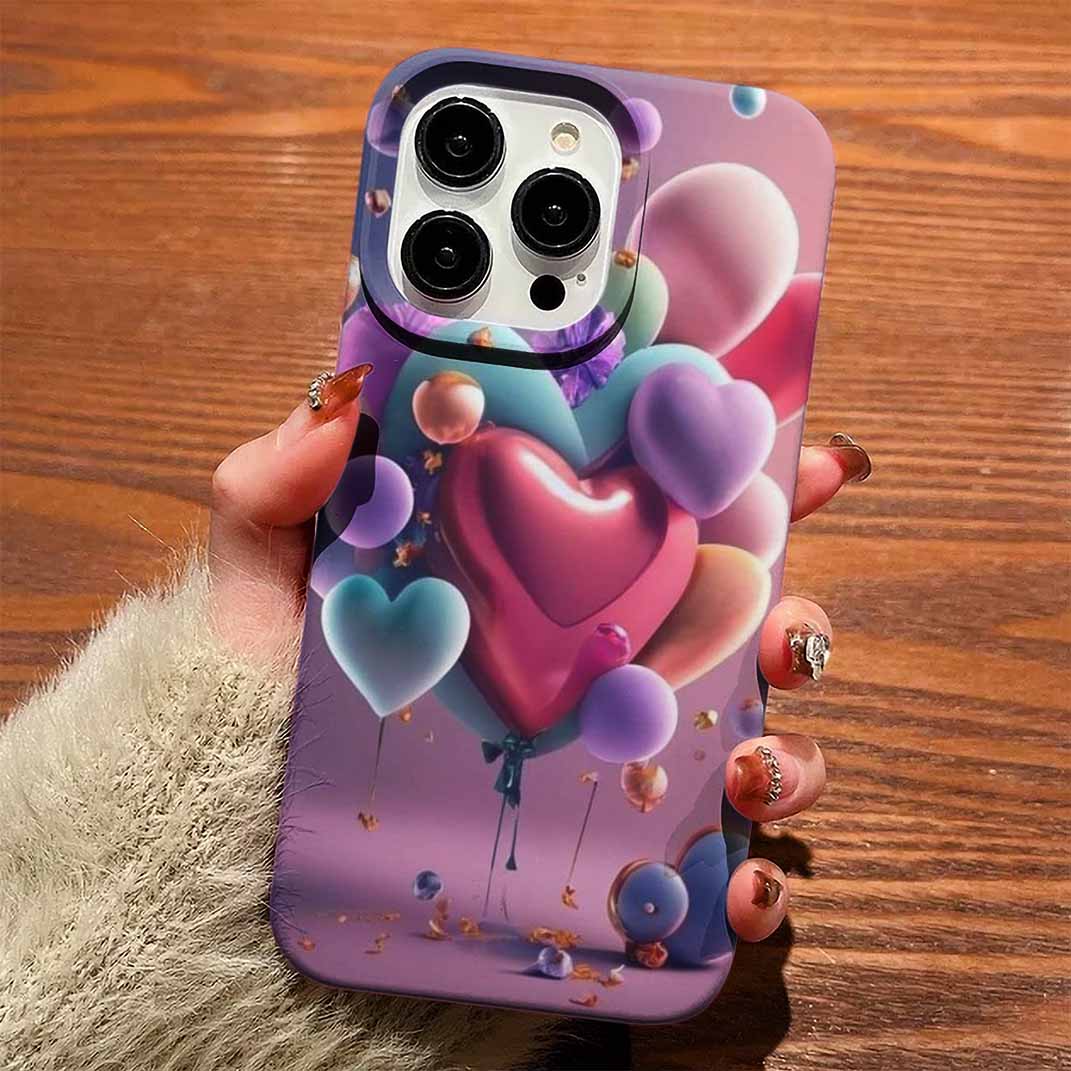 Renkli Uçan Balonlar Kalpler Tasarımlı Silikon Telefon Kılıfı