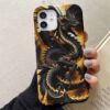 Sakura Motifli Siyah Ejderha Tasarımlı Silikon Telefon Kılıfı
