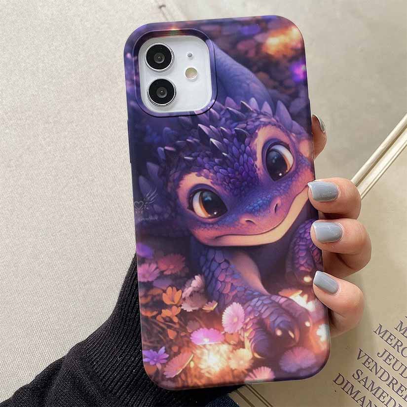 Sevimli Mor Ejderha Tasarımlı Silikon Telefon Kılıfı