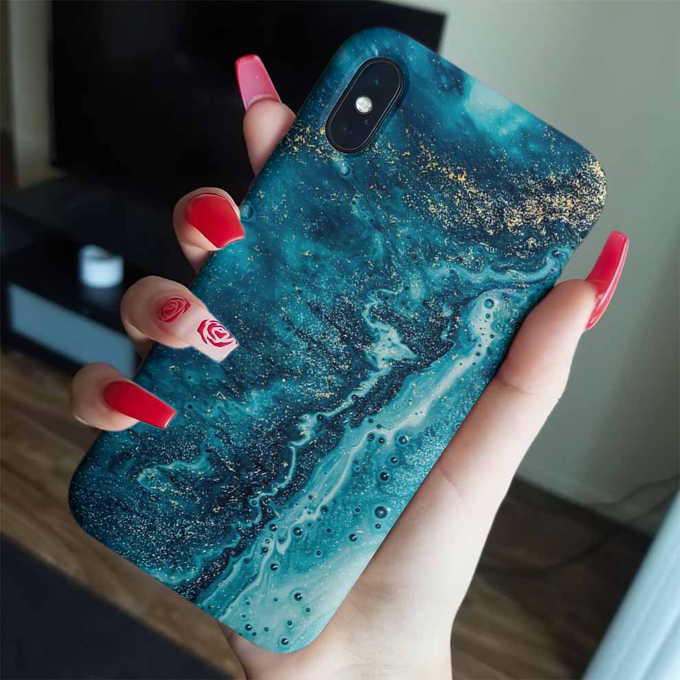 Turkaz Mavi Geçişli Dalgalı Yaldızlı Mermer Baskılı Silikon Telefon Kılıfı