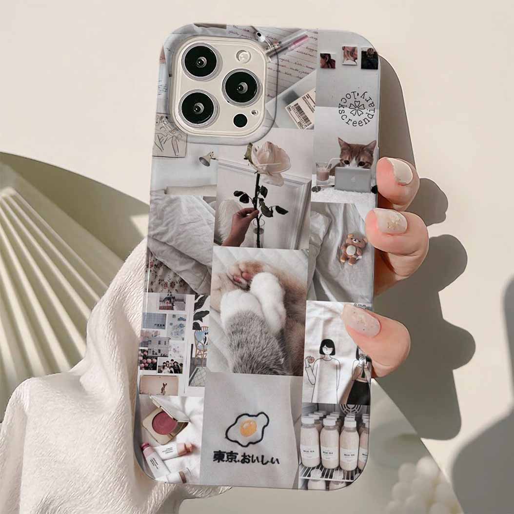 White Cute Cat Kolaj Tasarımlı Silikon Telefon Kılıfı