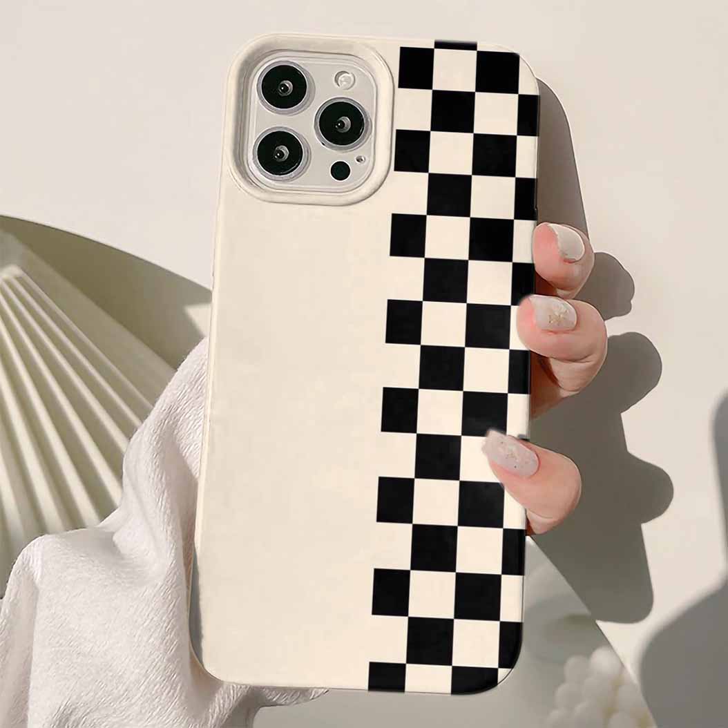 Yarı Krem Yarı Dama Desen Tasarımlı Silikon Telefon Kılıfı