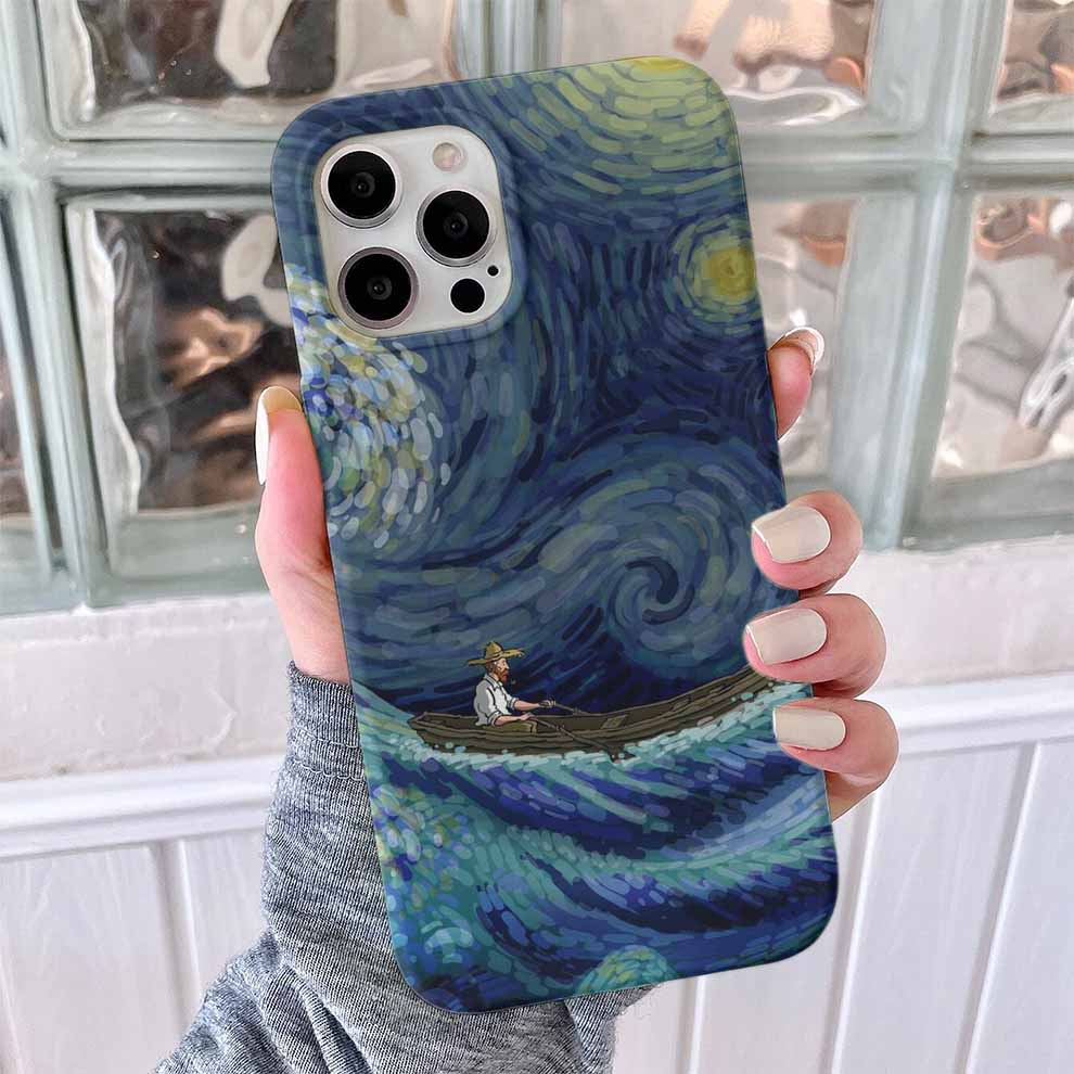 Yıldızlı Gecelerde Kayık Yolculuğu Baskılı Silikon Telefon Kılıfı